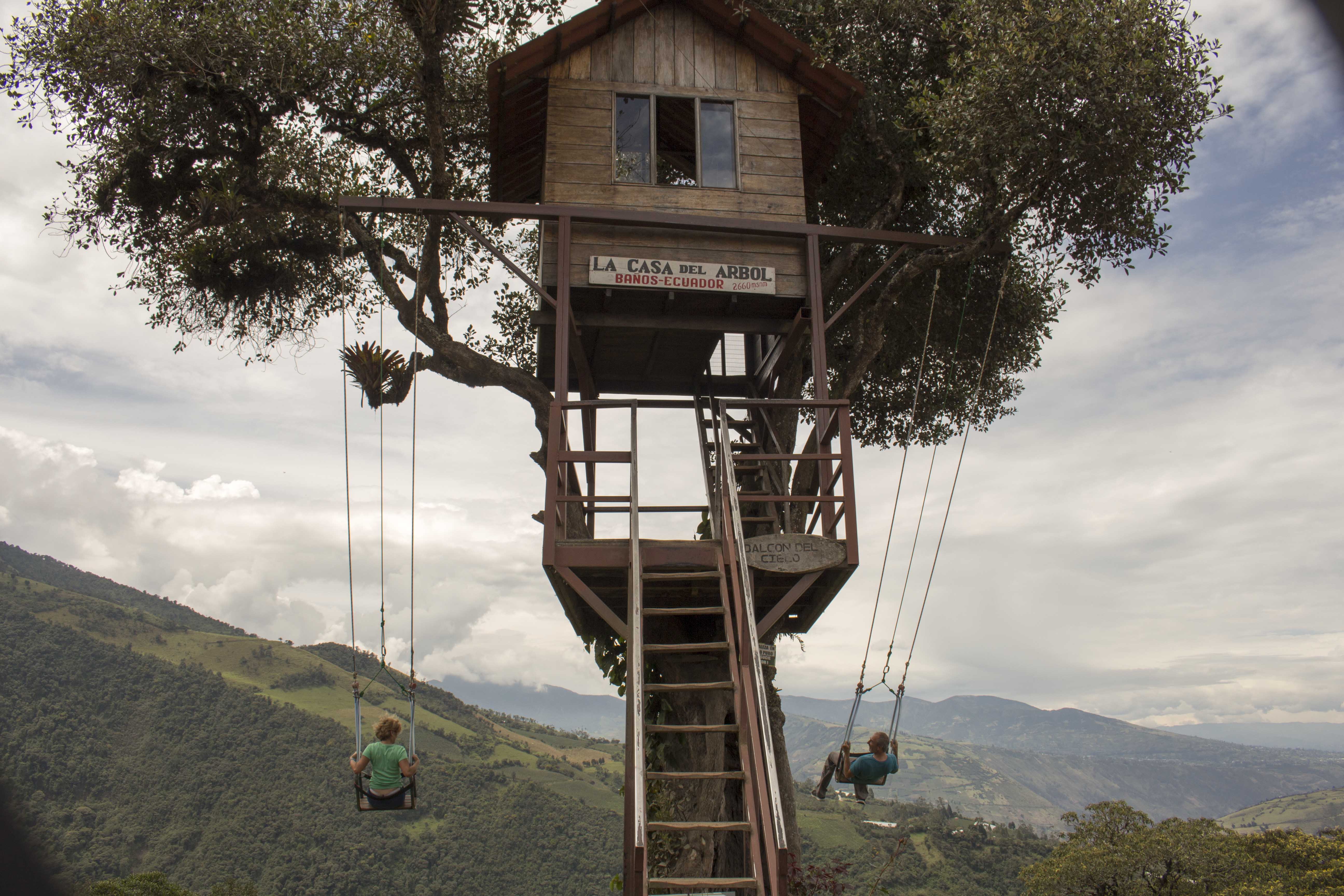 Es geht heute zum beruehmten Casa del Arbol, dem Baumhaus mit Schaukel, bei dem man ueber dem Abgrund schaukeln kann. Leider versetzt uns die Reieagentur mit dem gebuchten Bus mit dem Argument, dass Strassenarbeiten die Auffahrt verhindern. Wir lassen uns das Geld zurueckgeben und wollen nicht stat dessesn etwas anderes machen. Mit einem weiteren Miteisenden nehmen wir ein Taxi und versuchen e auf eigene Faust. Zunaechst sieht alles noch ganz gut aus, aber dann muessen wir doch den letzten Kilometer gehen, denn Strassenarbeiten verhindern tatsaechlich das Durchkommen. Aber es hat auch seine Vorteile, denn wo nun keine Busse hier hochkommen, sind wir mit ein paar Waagemutigen allein und koennen die Schaulelei voll auskosten. Die Kulisse ist einfach fantastisch und auch der Vulkan nebenan zeigt sich mal ohne Wolken.